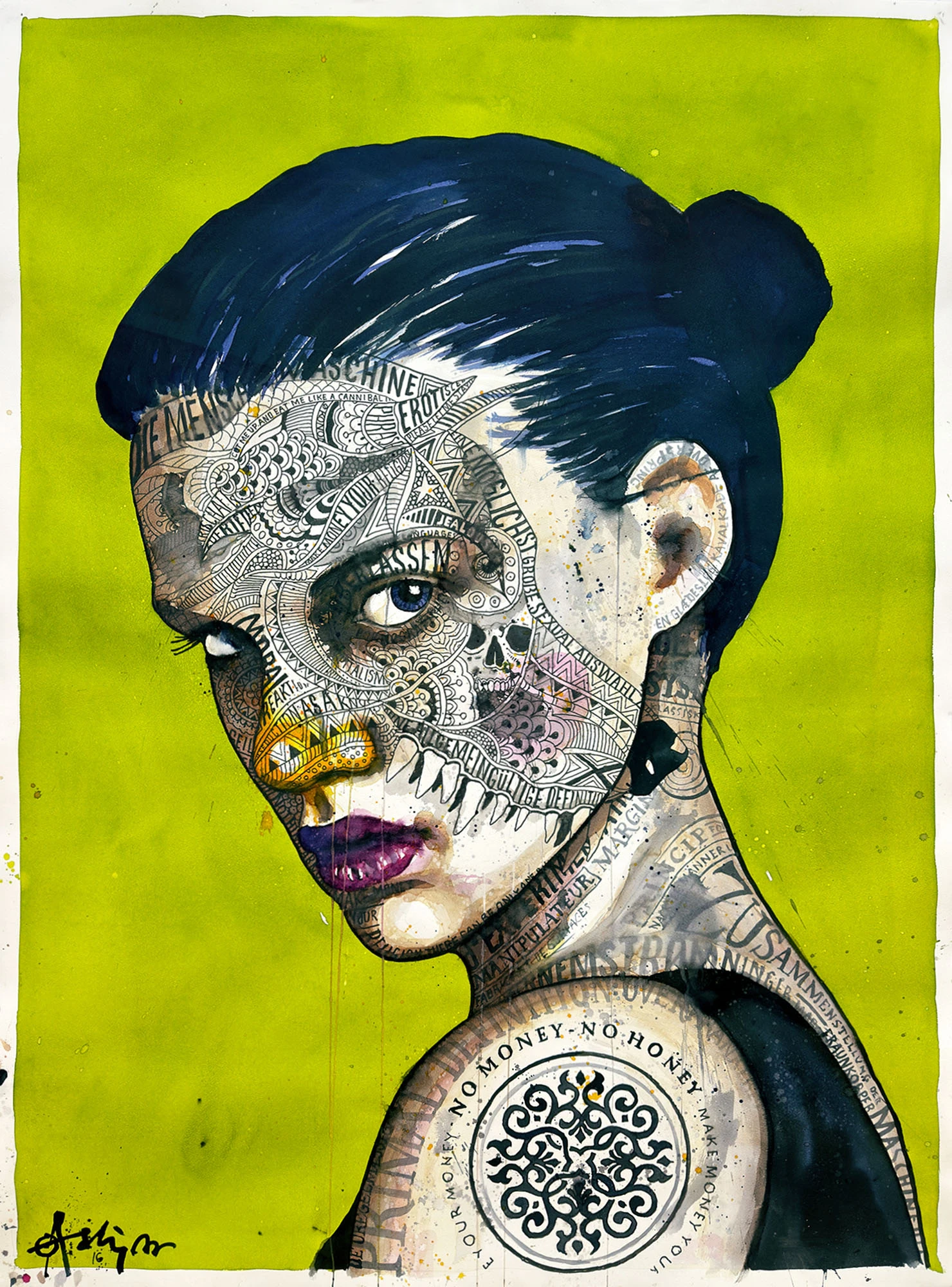 Medie: Akvarel og blyant på papir